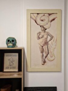 I,ve also work as a tattoo artist for 24 years, creating original designs influenced by classical art and traditional American and japanese tattoo styles. In 2022 I moved to Northern Italy, and since 2023 I,ve been living in Dublin with my daughter, where i continue to develop both disciplines